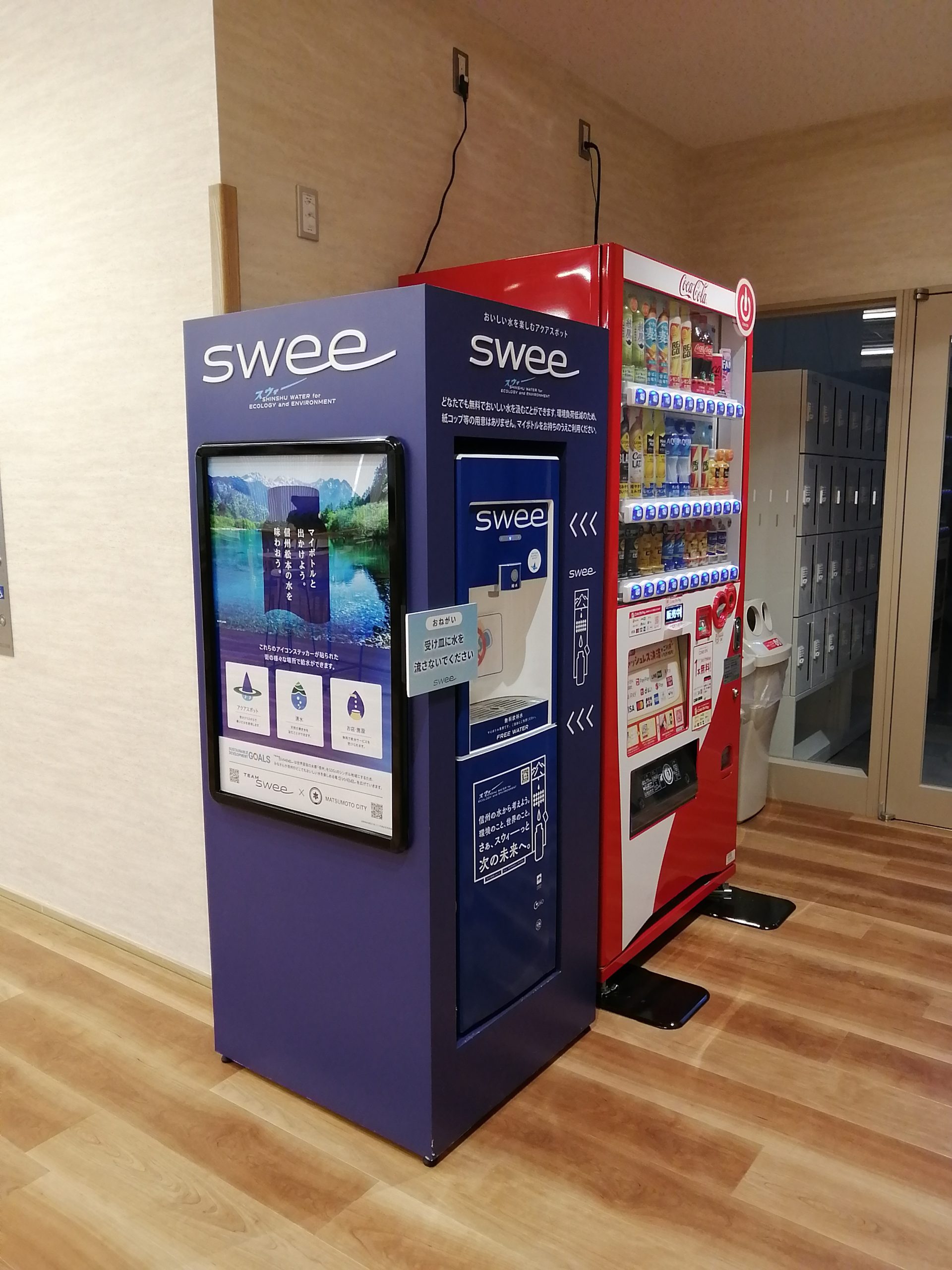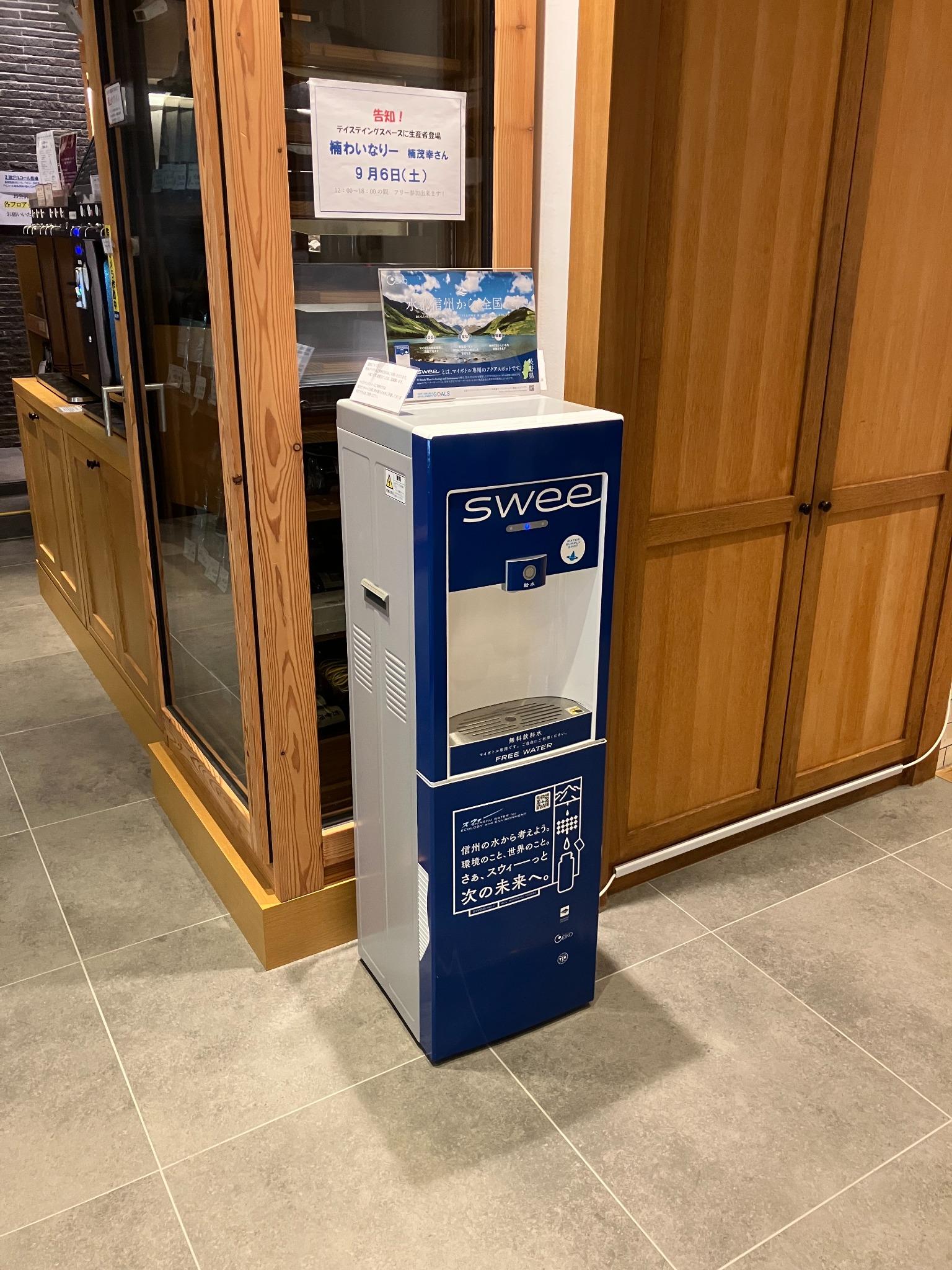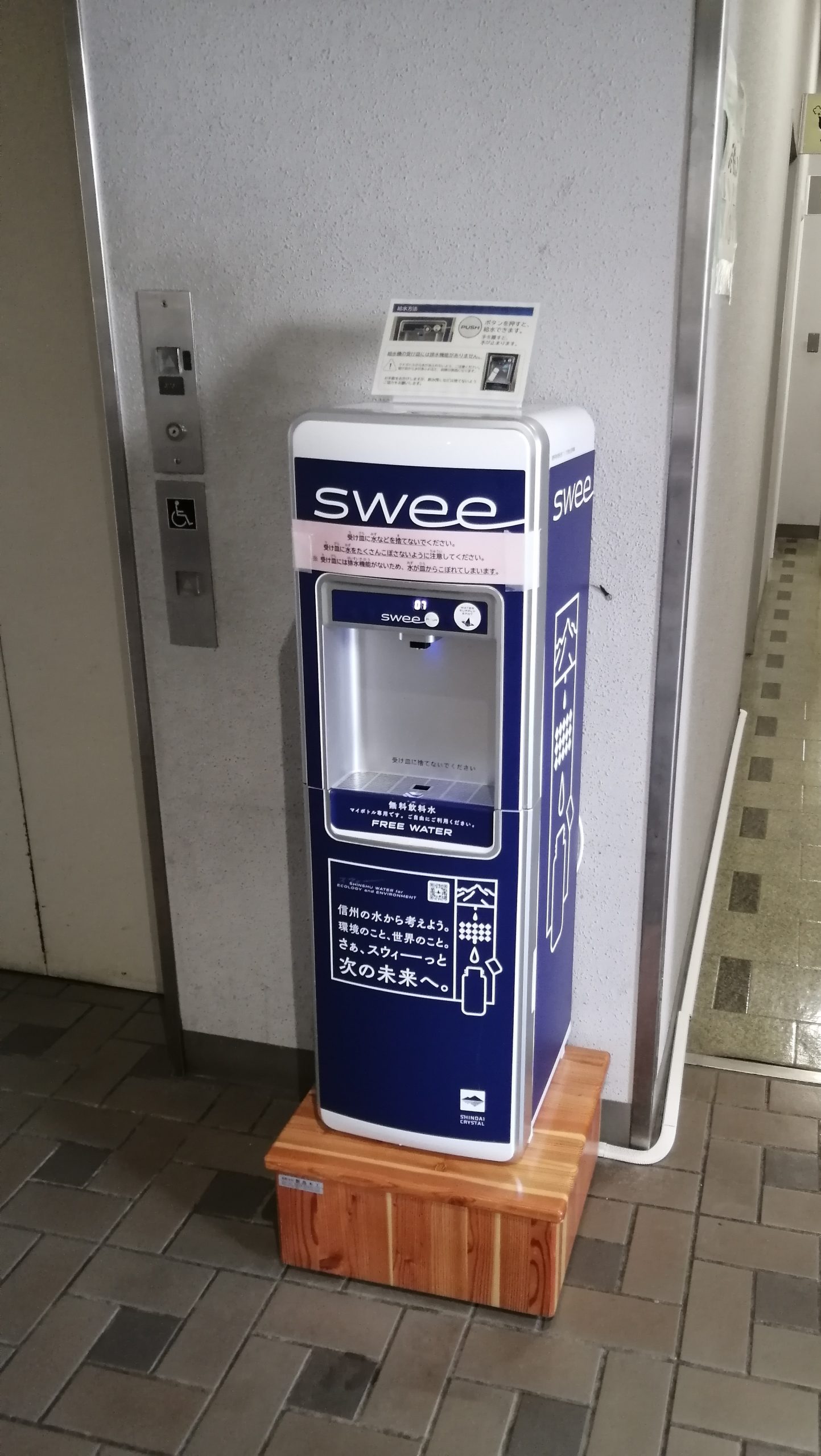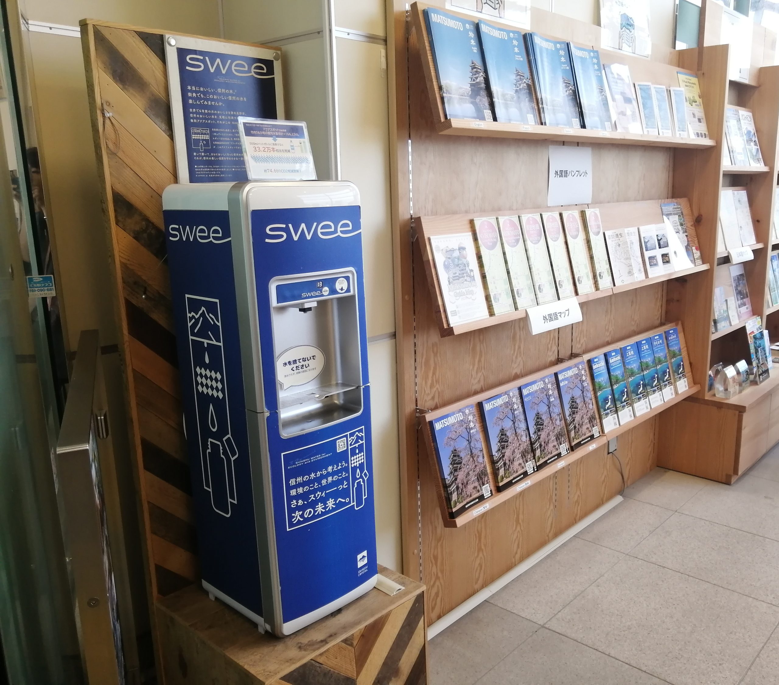 sweeは、Shinshu Water for Ecology and Environment の略で、信大クリスタルを使用したアクアスポット・マイボトル活動の総称です。市民・県民の方々、観光客の方々にSDGs達成やPETボトルの削減・脱プラ社会への貢献を考えて頂ける場、信州の水をおいしく飲んでいただく場として、マイボトル専用アクアスポットsweeを県内各所に展開しています。